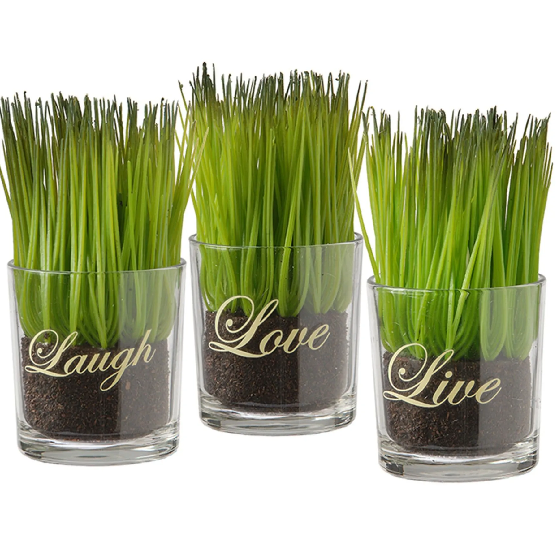 - This Spectacularly Spring Decoration Is The Perfect Complement To Any Decorative Arrangement, Featuring Three Cylindrical Glasses With Green Plant Sprouts And Three Heartfelt Messages On Each.