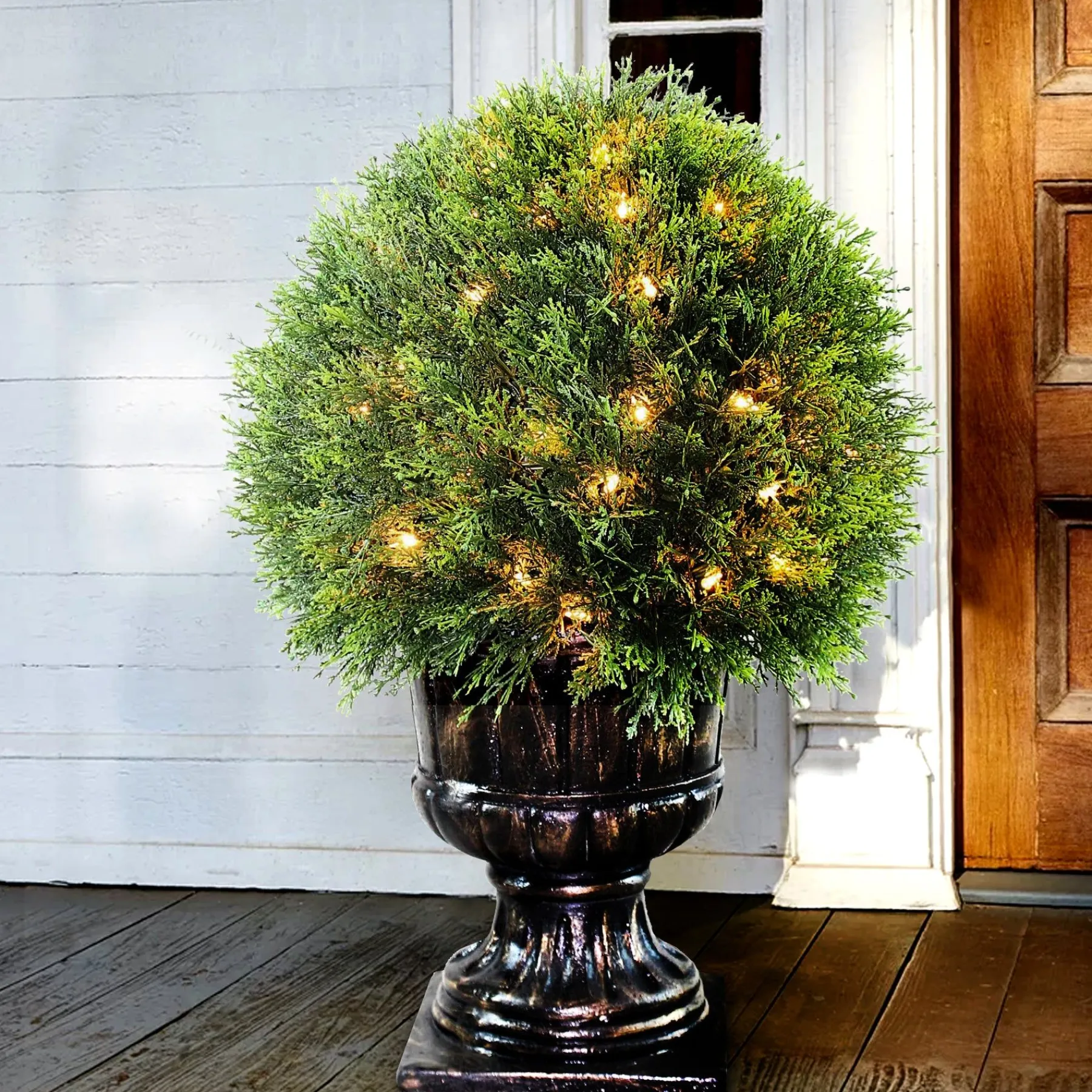 Add A Touch Of Greenery To Indoor Or Outdoor Areas Around Your Home With This Attractive Life-Like Juniper Ball Topiary. This Artificial Shrub, Seated In Decorative Urn Base, Appears To Be Living Yet Requires No Maintenance, Water Or Sunlight. It Is Pre-Lit With 70 Ul Listed Clear Lights That Remain Lit Even If A Bulb Burns Out. Display Along Walkways, On Porch, Patio Or Entranceways.