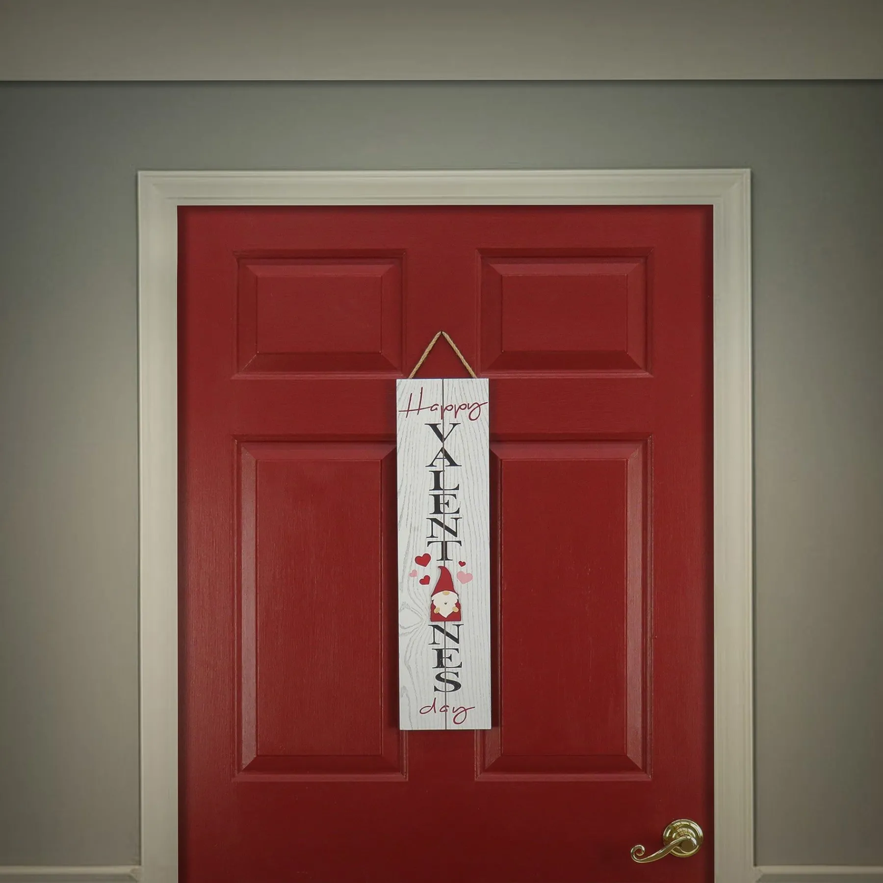- Features A Fun Hanging Décor Piece Displaying The Message ‘Happy Valentine’S Day’ And A White-Bearded Gnome Surrounded By Pink Hearts.