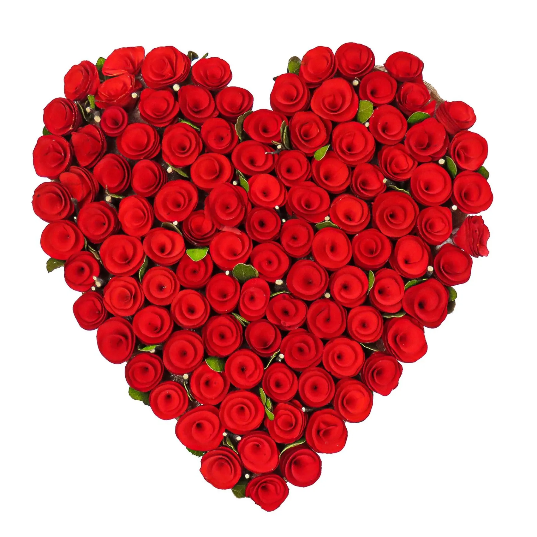 - Features Tightly Grouped Red Curls And Cuts Of Wood Shaped And Painted Like Flower Petals. Tucked Inside And Peeking Out Are Green Leaves For Added Natural Appeal.